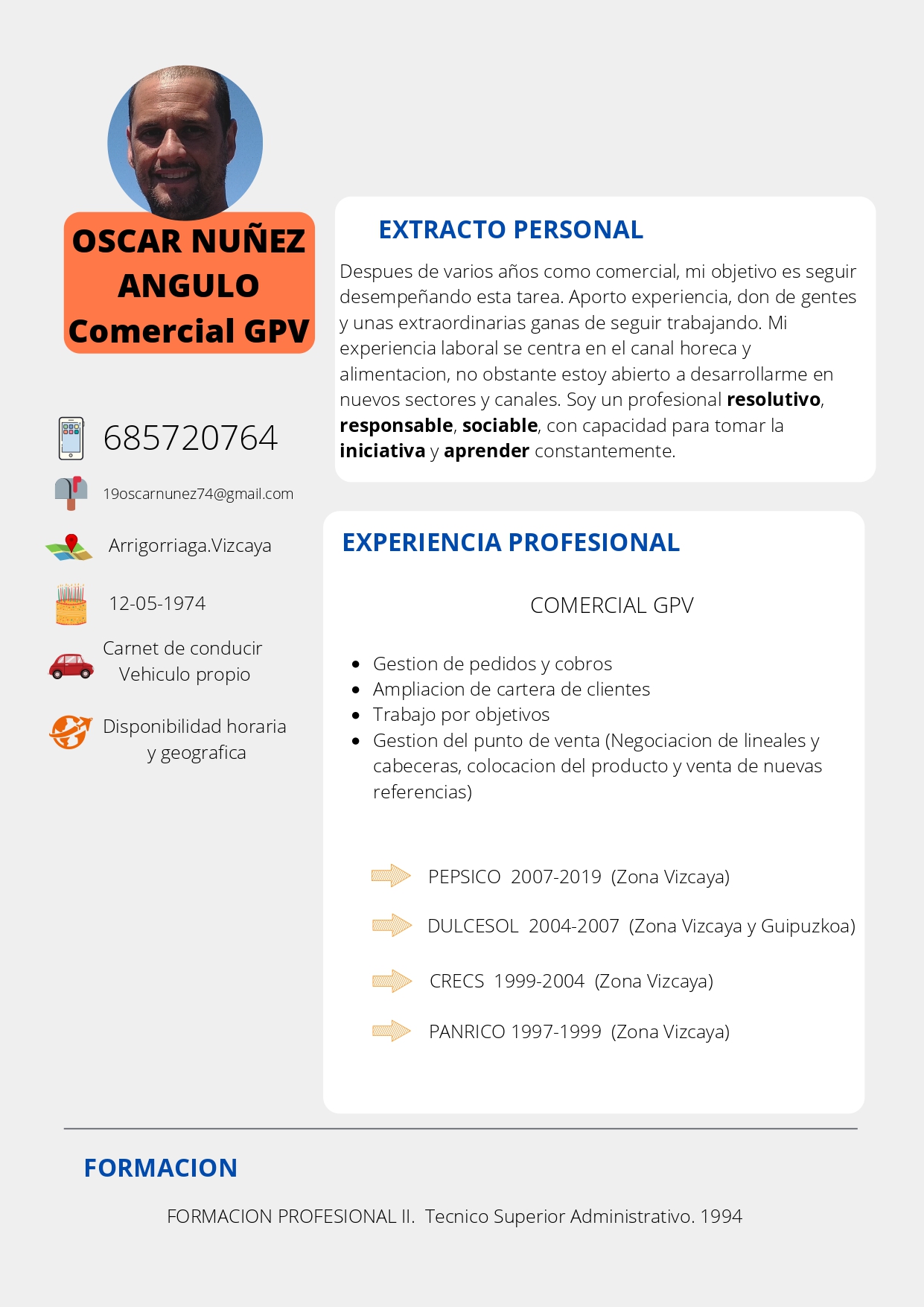 Profesional con más de veinte años de experiencia como Comercial y Gpv en el Canal Horeca y Alimentación, abierto a desarrollarme en nuevos canales y sectores.